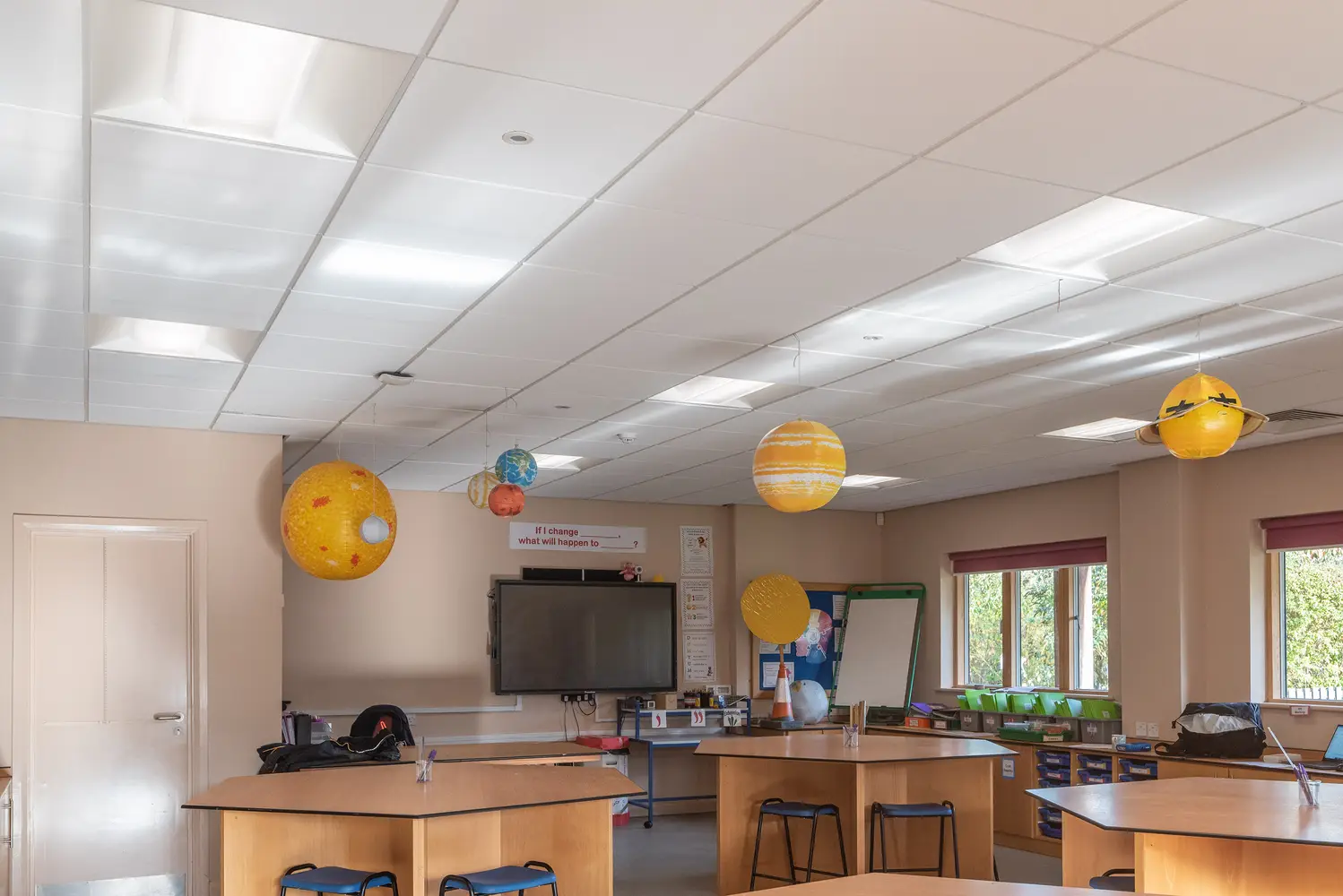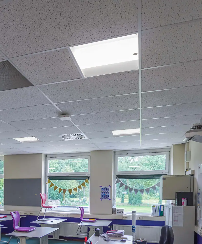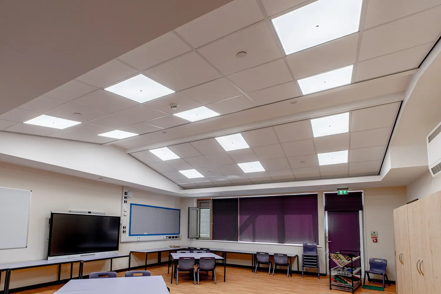 Die Produktreihen Kanby Evo und Kanby Pro sowie Jubilee-XL bieten blendungsarme Versionen, die sich ideal für Anwendungen im Klassenzimmer eignen. Durch die größere Grundfläche der Kanby Pro und der Jubilee-XL eignen sie sich ideal für Nachrüstungen, da die größeren Abmessungen den Raum der ursprünglichen Leuchten abdecken.