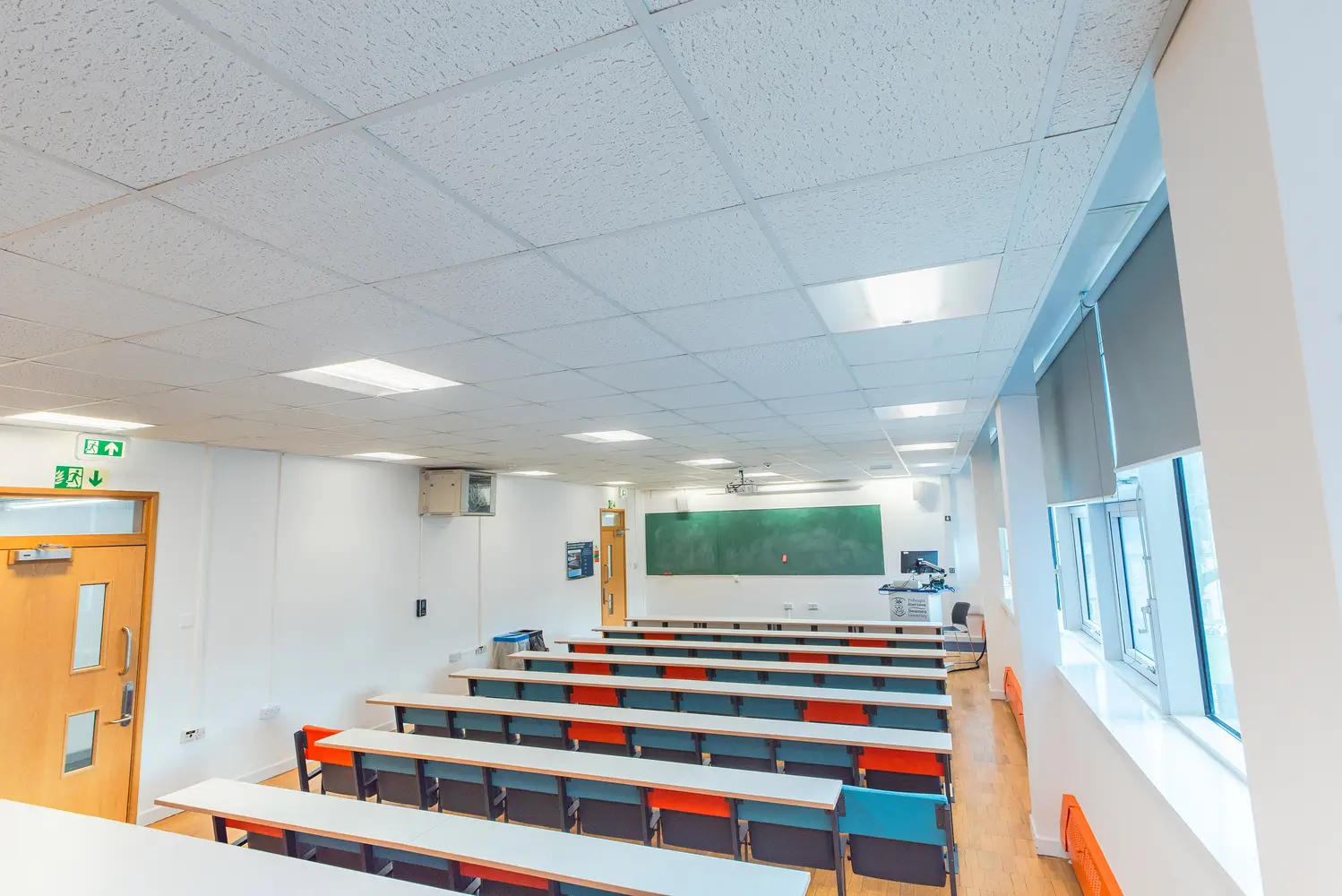 Klassenzimmer sind sehr häufig mit Computern und Monitoren ausgestattet. Daher muss die Blendung kontrolliert werden, um eine komfortable Arbeitsumgebung zu ermöglichen. CIBSE: Der SLL-Beleuchtungsratgeber 5 – „Beleuchtung im Bildungsbereich“ empfiehlt eine maximale Blendungsbewertung von 19.