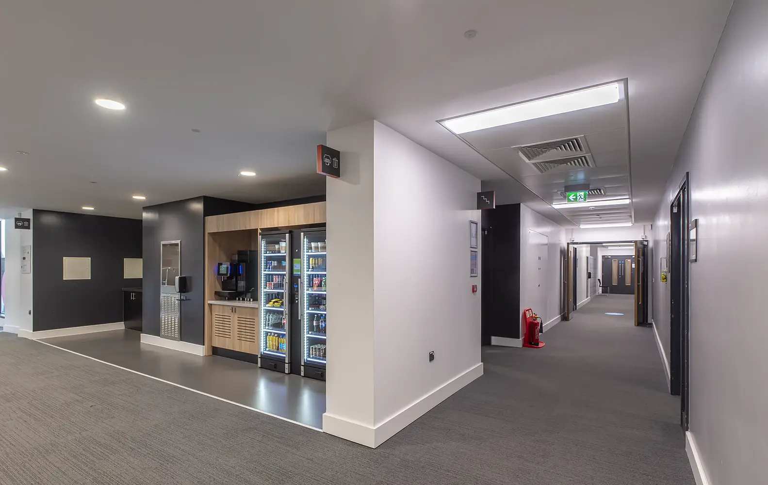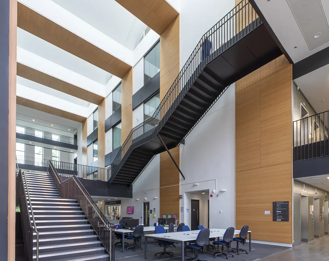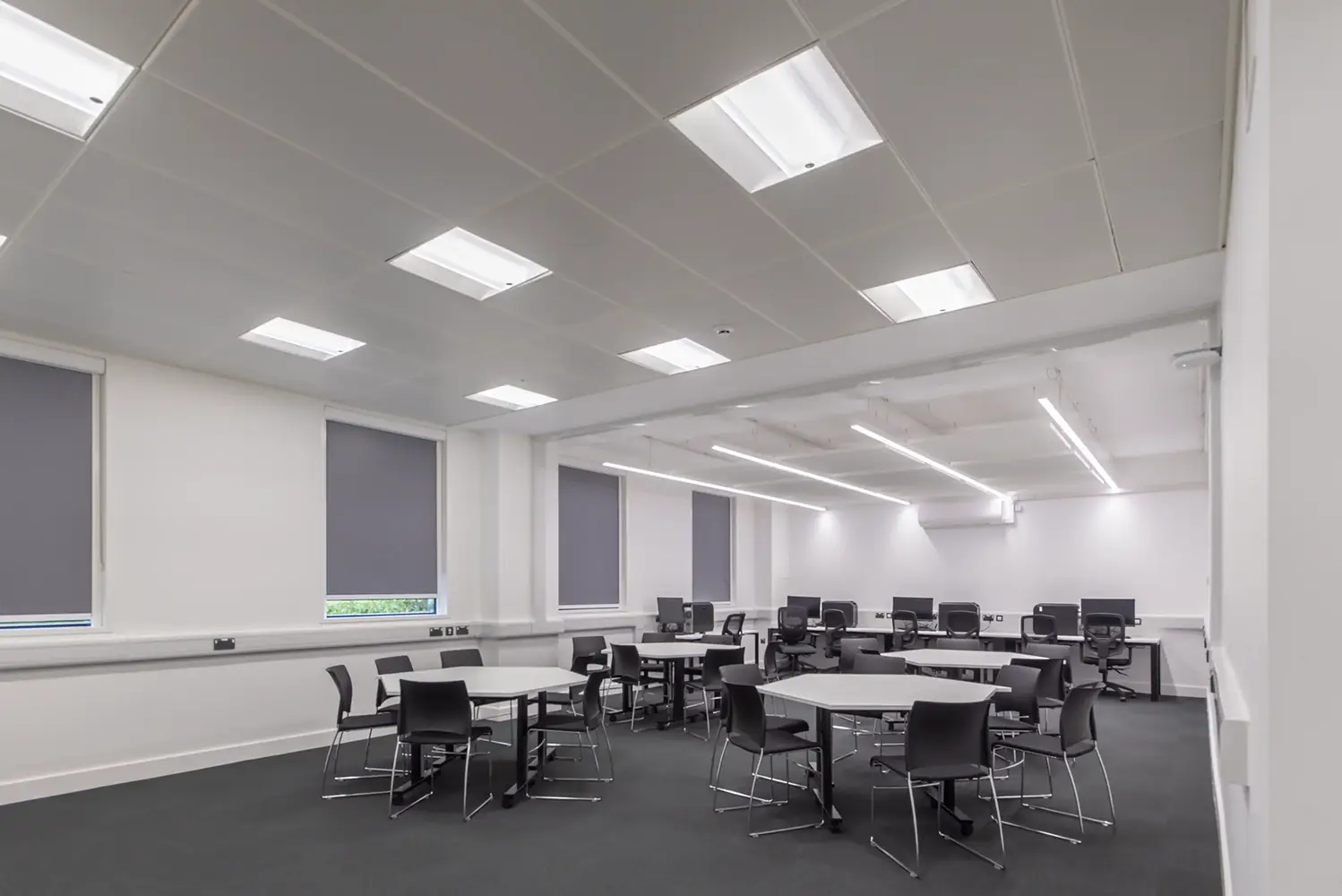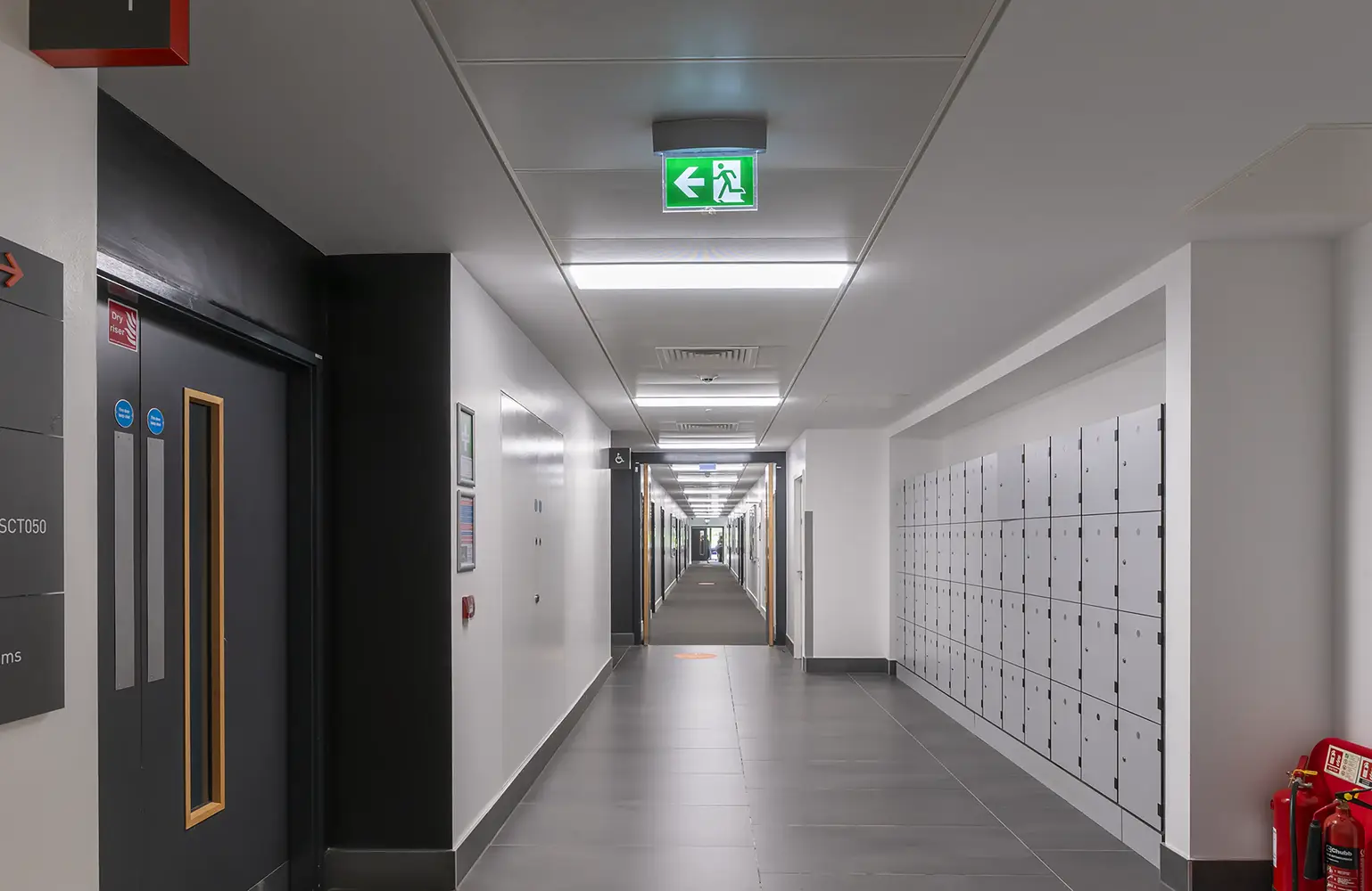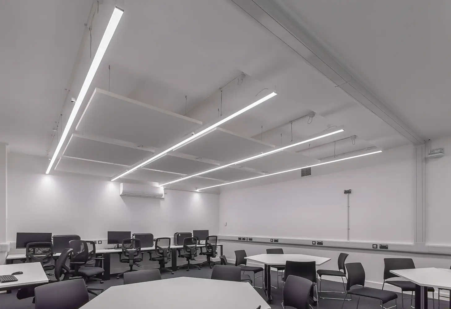 In den älteren Bereichen des Seacole-Gebäudes waren auf vier Etagen noch Rasterleuchten mit Leuchtstoffröhren installiert. Thorlux rüstete diese Bereiche auf moderne LED-Beleuchtung um, überwiegend auf die Rasterleuchte Hi-Style, die nun über das Lichtmanagementsystem SmartScan gesteuert werden. Die Umrüstung erfolgte im 1:1-Austausch. Positionen von einzelnen Leuchten wurden nur verändert, um der aktuellen Raumnutzung besser zu entsprechen und zu erreichen, dass die britischen Beleuchtungsnormen erfüllt werden.