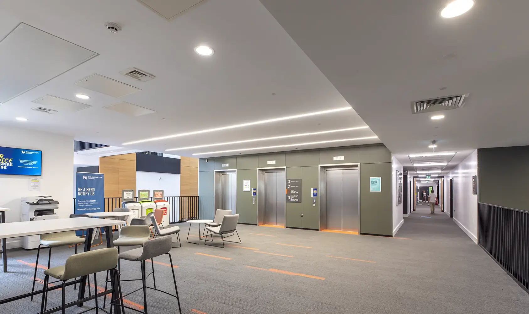 Thorlux Lighting hat in der Vergangenheit bereits Leuchten für das Seacole-Gebäude geliefert und setzt mit dem aktuellen Projekt eine langjährige und erfolgreiche Partnerschaft mit der Birmingham City University fort. Um die langfristigen Ziele des Dekarbonisierungsplans der Universität zu erreichen – der Plan umfasst unter anderem den Austausch von Gasheizkesseln durch Wärmepumpen, die Reduzierung des Wasserverbrauchs und die Förderung der lokalen Artenvielfalt – war Thorlux beauftragt worden, das Beleuchtungssystem im gesamten Gebäude zu modernisieren, um auch bei der Beleuchtung eine bessere Energieeffizienz zu erzielen.