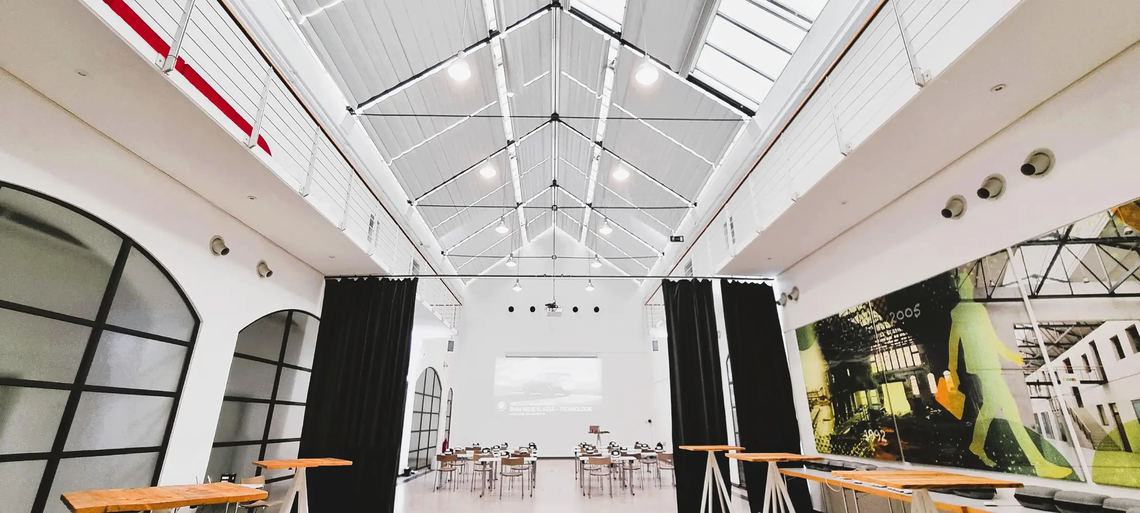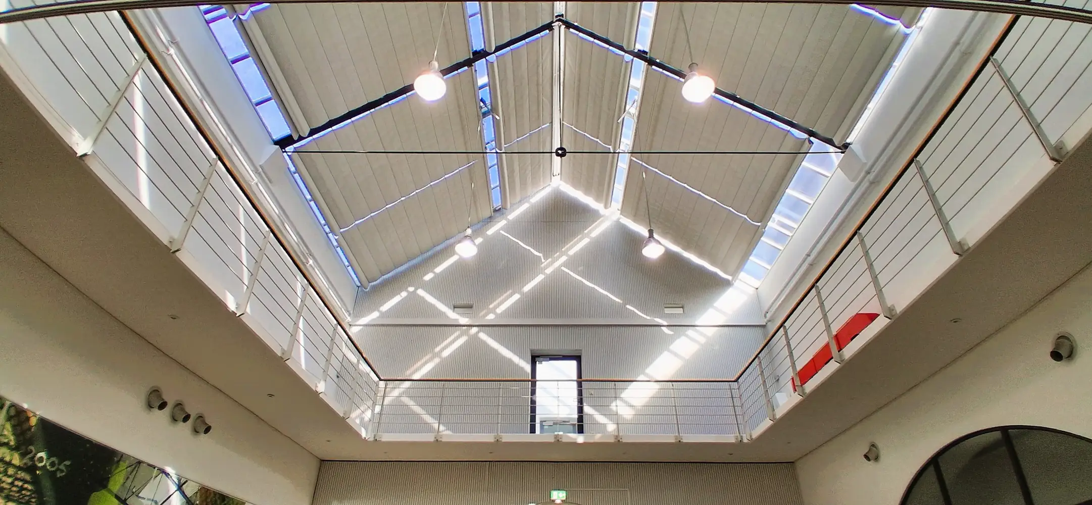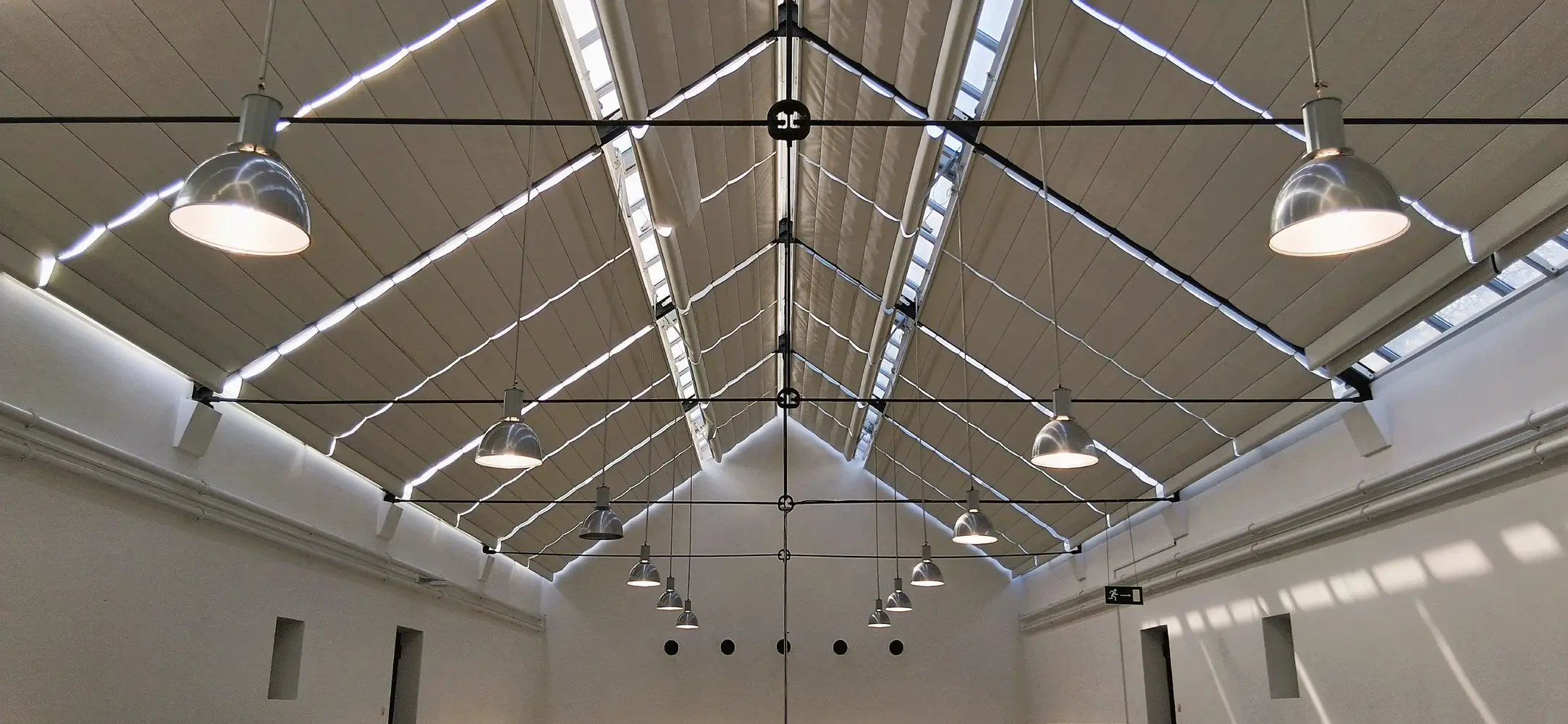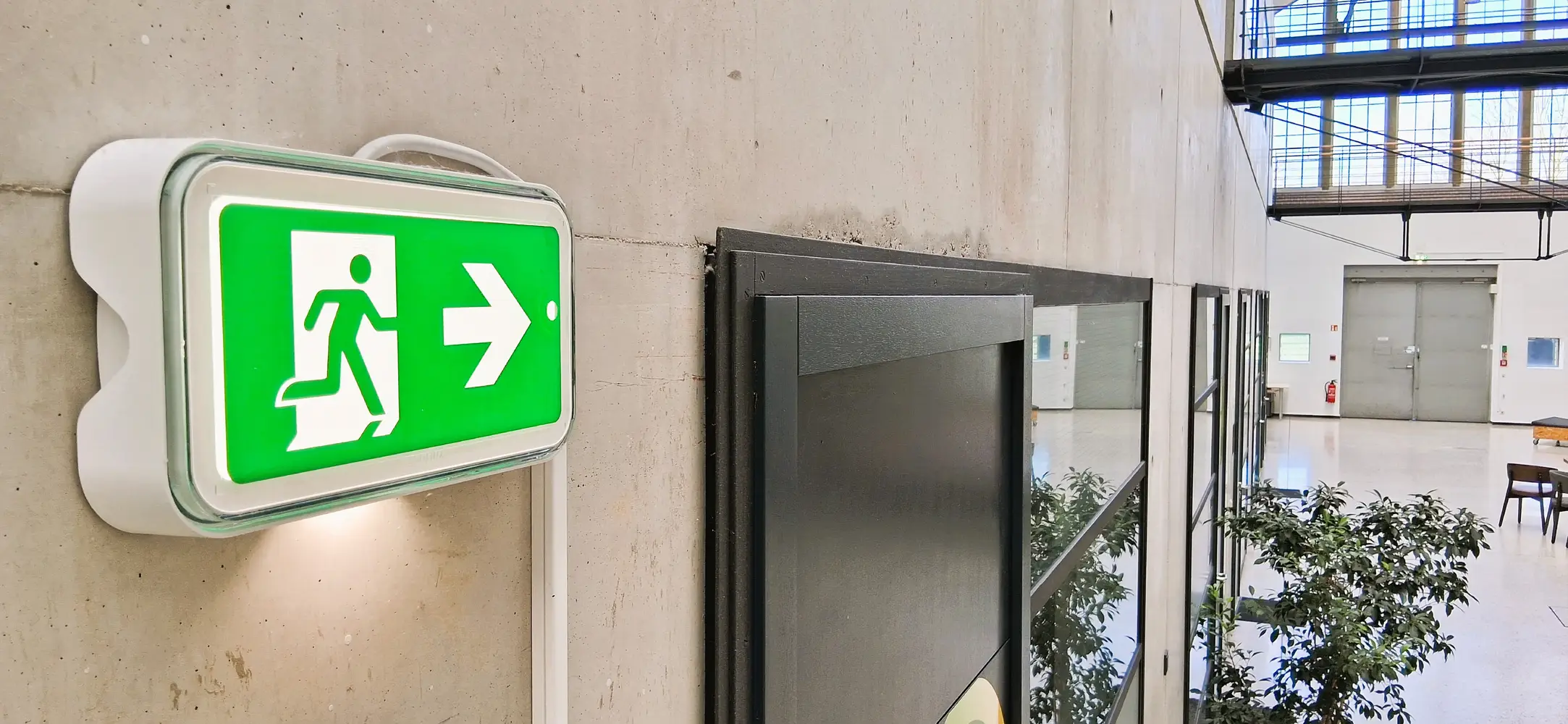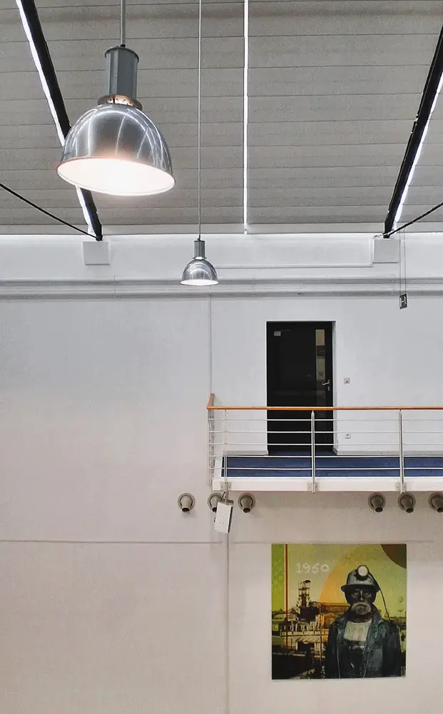 Das ikonische, im Jahr 1990 im Jugendstil erbaute Gebäude war nach dem Ende des Bergbaus in der Region vor 35 Jahren im gesamten Innenbereich aufwändig umgebaut worden – von einer Wasch- und Umkleidehalle der Bergleute in ein modernes Bürogebäude für kleinere Firmen und Start-Ups. Jetzt war es an der Zeit, die inzwischen in die Jahre gekommene Beleuchtung aus Leuchtstoffröhren und Halogenlampen aus den 90ern schrittweise zu erneuern und auf ein zukunftsfähiges, jederzeit problemlos erweiterbares System für Standard- und Notbeleuchtung umzustellen.