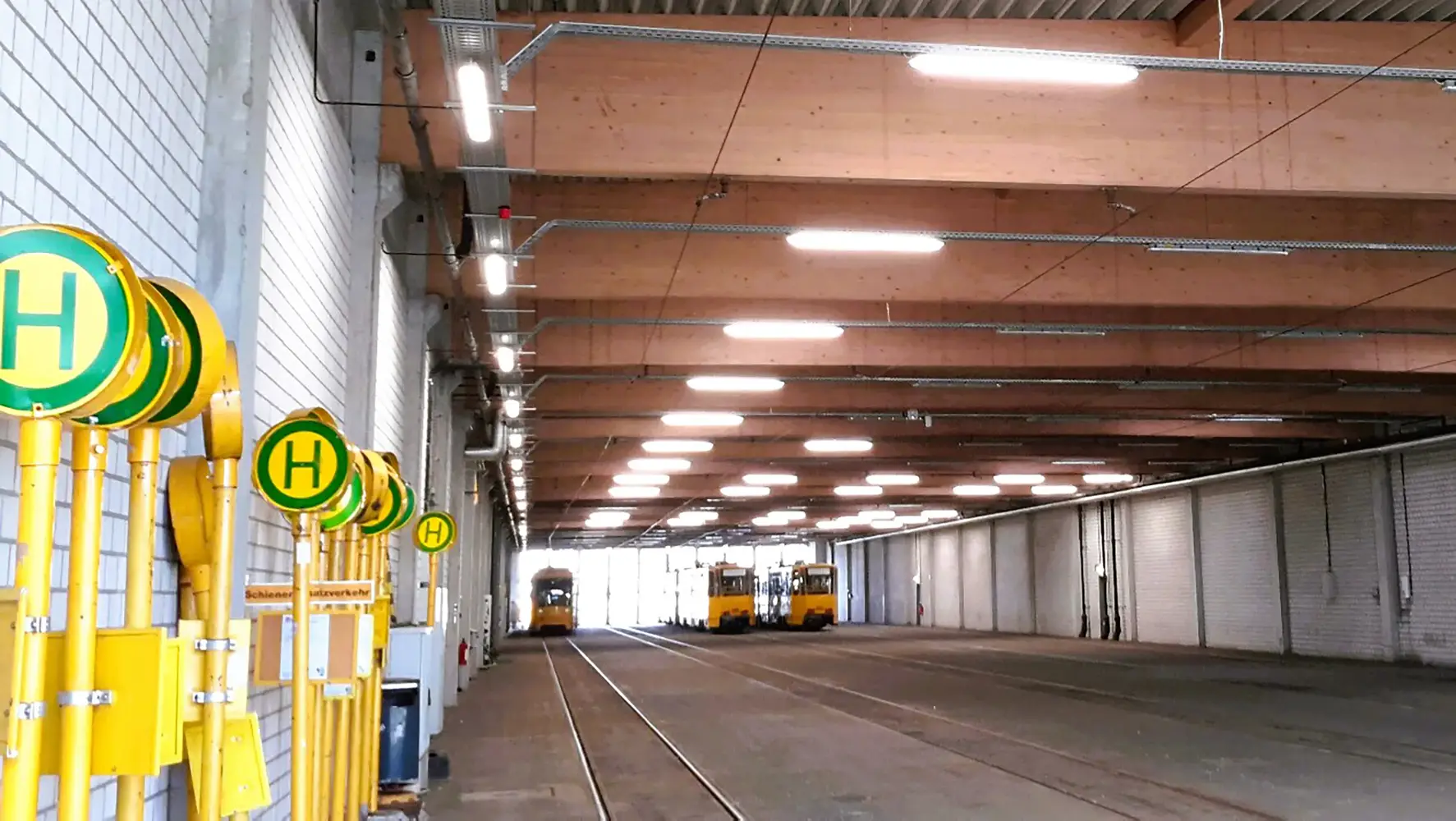 Jede neue Leuchte verfügt über einen eingebauten Sensor; alle Leuchten sind über das funkbasierte Lichtmanagementsystem SmartScan miteinander vernetzt. Die Sensoren in den Leuchten reagieren auf Bewegung, etwa wenn Personal vor Ort ist oder wenn Busse und Straßenbahnen ins Depot einfahren. Der Effekt: Es wird keine Energie für Licht in leeren Hallen verschwendet – Depots und Werkstatt sind nur dann beleuchtet, wenn Personen anwesend sind und Licht auch benötigt wird.